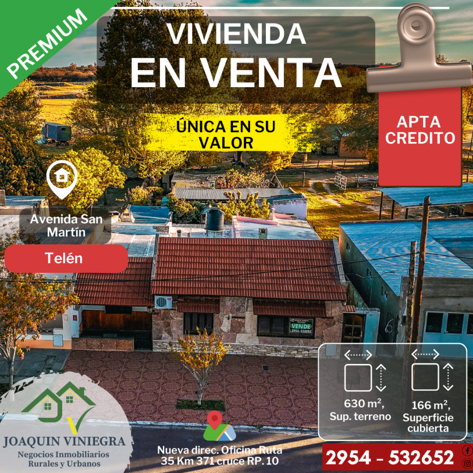 Ideal tanto para vivienda familiar como para uso comercial o mixto (local + vivienda), algo muy valorado en pueblos como Telén.